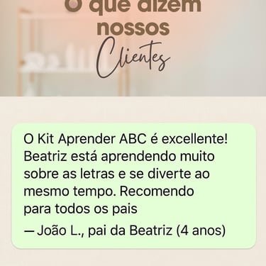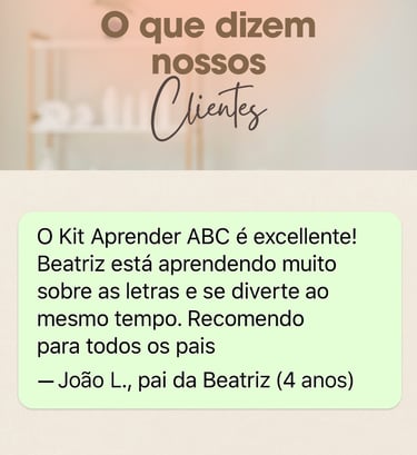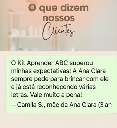 Veja o que Pais e educadores dizem sobre o Kit aprender ABC: